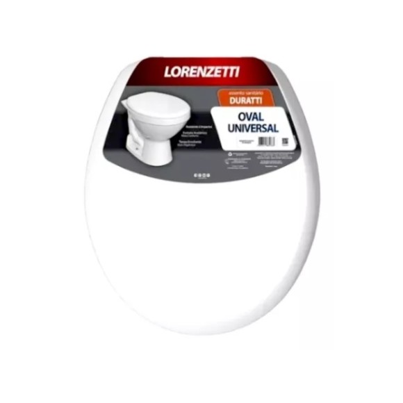 O Assento Sanitário Duratti Lorenzetti é fabricado em polipropileno, tem o design diferenciado e inovador, com brilho que realça o design do produto. Seus cantos arredondados facilitam a limpeza. Possui formato anatômico de fácil instalação. Com a preocupação de preservar o meio ambiente, o processo de fabricação não agride a natureza, com o material de acabamento 100% reciclável. Ele acompanha buchas e parafusos, endosso da marca Lorenzetti, o modelo é universal para louças ovais, resite a impactos