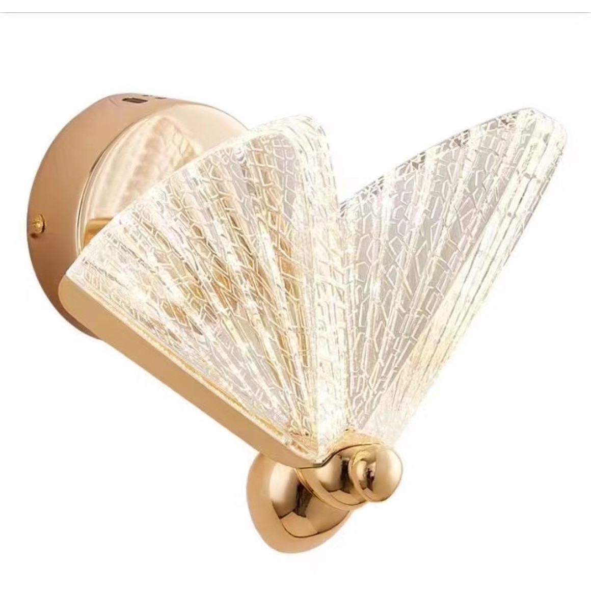 Arandela Borboleta Dourado Led 3000K Bivolt Temperatura de Cor: 3200K (Branco Quente) Material: Aluminio+Acrílico Cor: Dourado e Transparente Dimensões: 25x25(AxL)