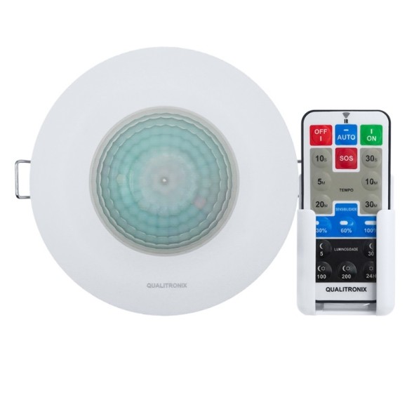 O Sensor ÍRIS possui controle remoto que acompanha um suporte, permitindo a programação das configurações a qualquer momento, mesmo após a instalação!